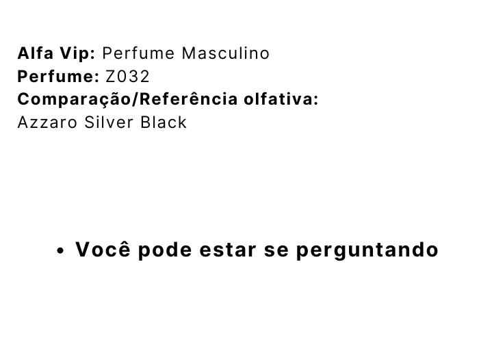 A fragrância do Alfa Vip Z032 é muito similar ao Azzaro Silver Black, oferecendo a mesma elegância e frescor.