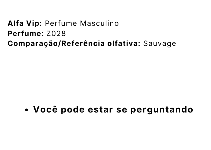 A fragrância do Alfa Vip Z028 é muito similar ao Sauvage, oferecendo a mesma elegância e frescor.